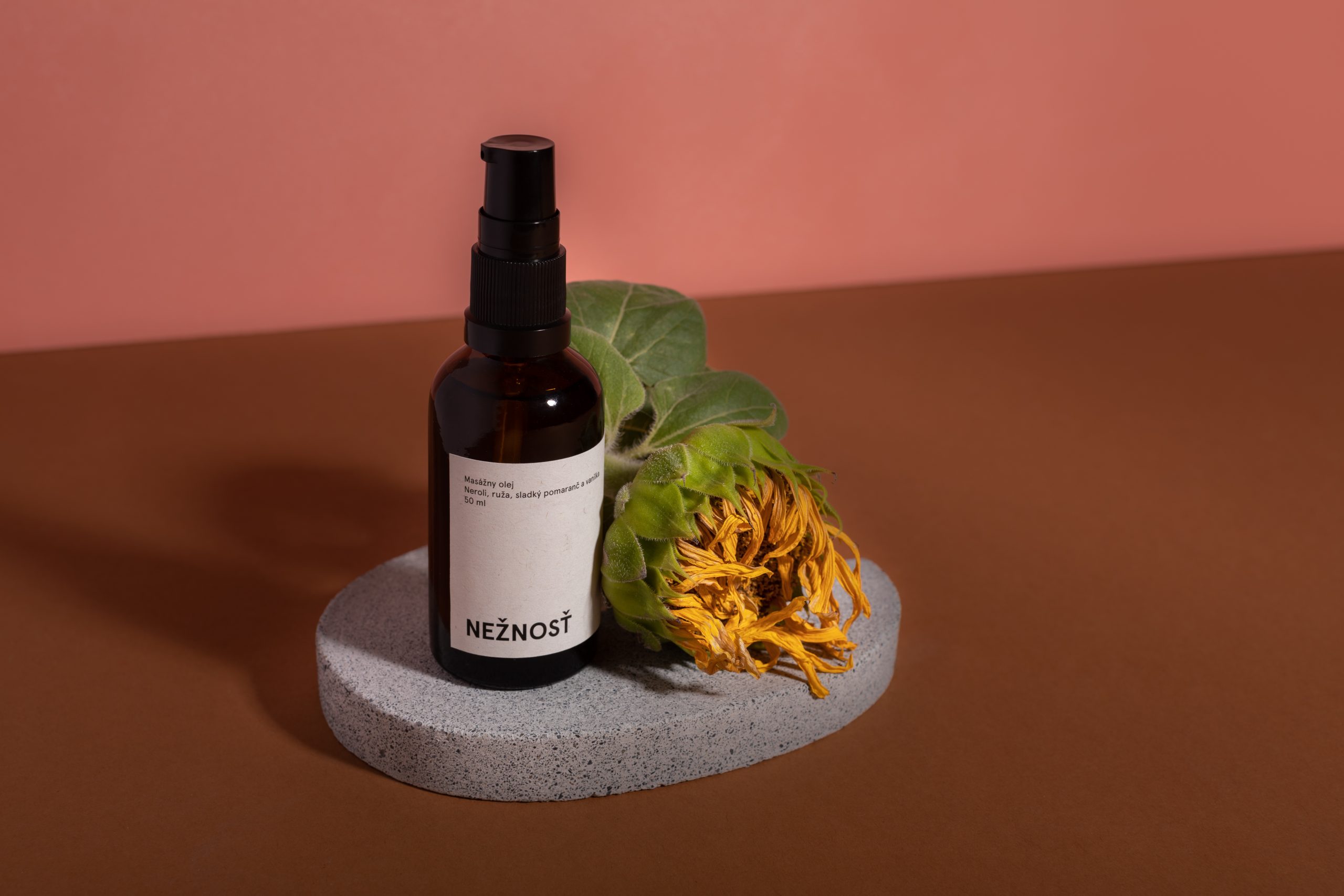 Aplikujte potrebné množstvo oleja do dlaní, jemne zohrejte trením a nežne vmasírujte do pokožky.